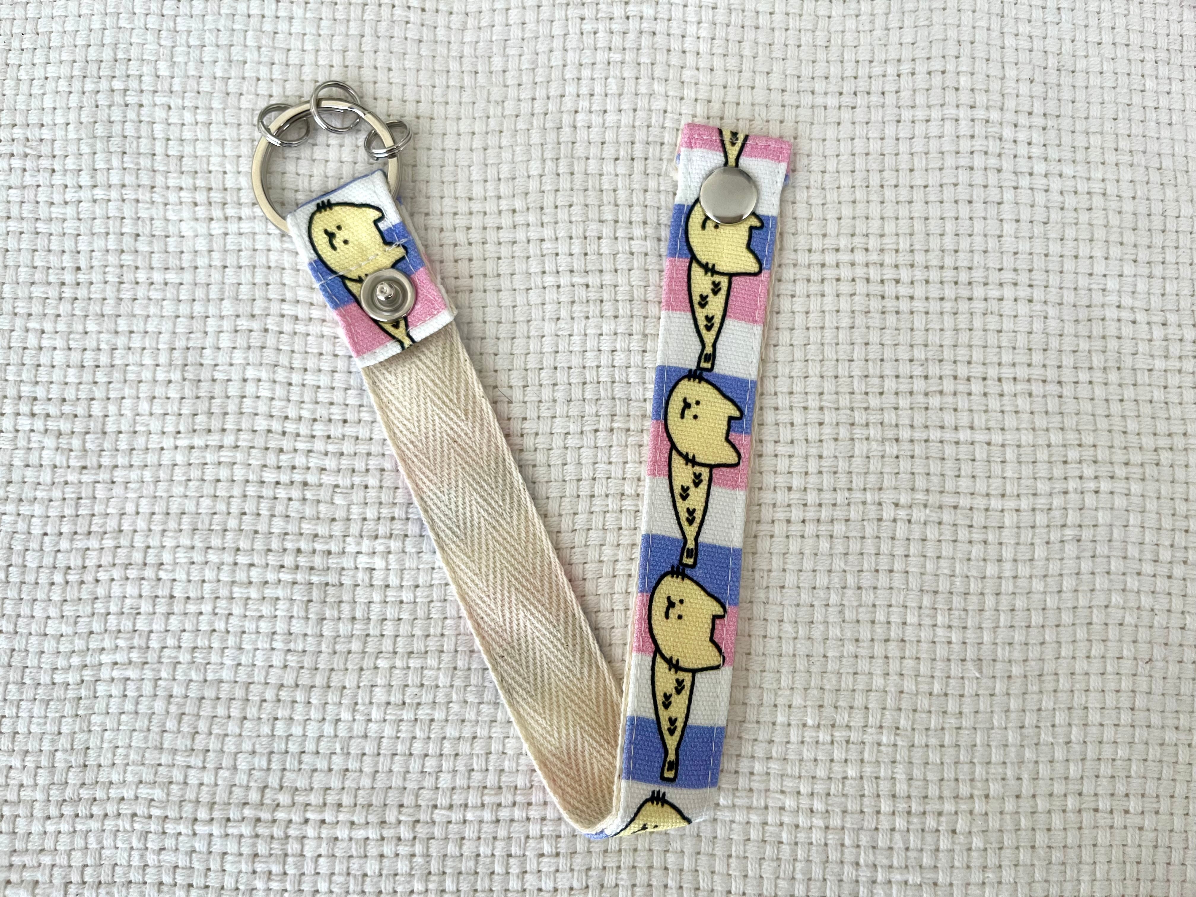 ししゃもねこやかぱおのカラフルなストラップキーホルダー。