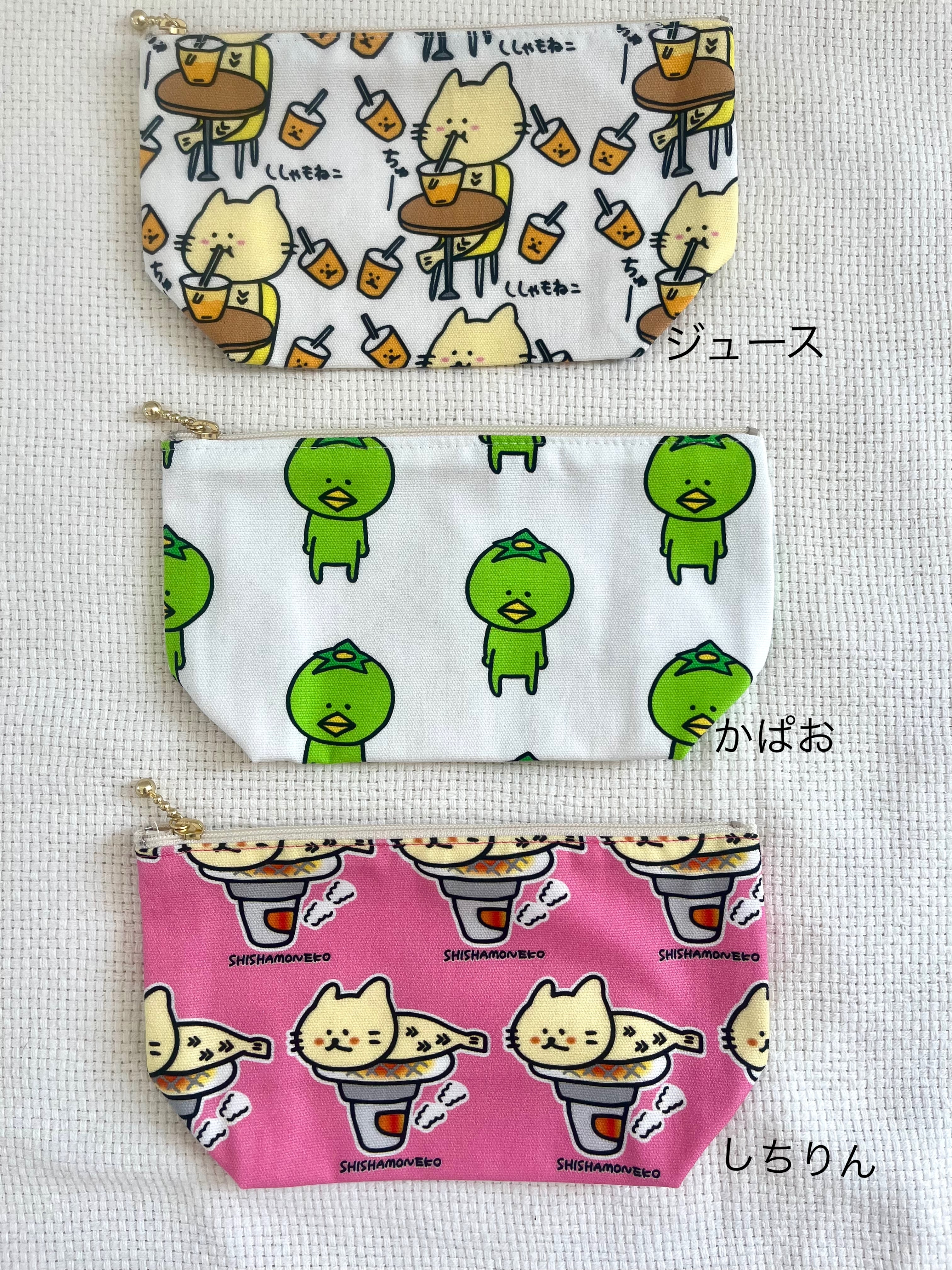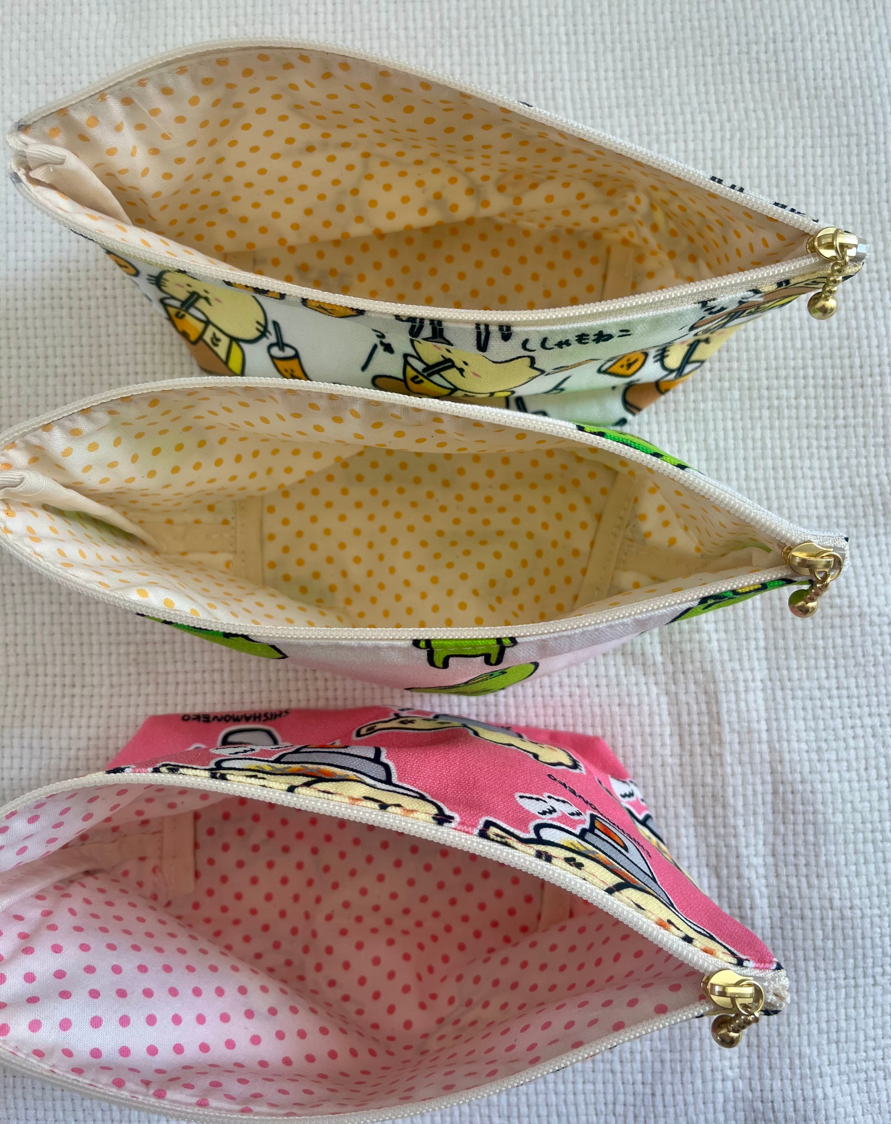 ポーチ(大サイズ)。水玉柄の裏地付き